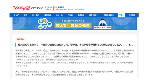 後日、そのお客様のもとに依頼した業者が改めて現地確認に来たところ、見積もりサイトで確認した金額よりも費用が高くなるとその場で交渉してきたそうです。